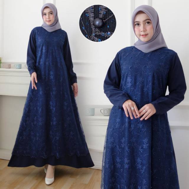Baju Gamis Pesta Gamis Navy Dongker Gamis Brukat Gamis Brokat Impor Gamis Tile Kombinasi Shopee Indonesia