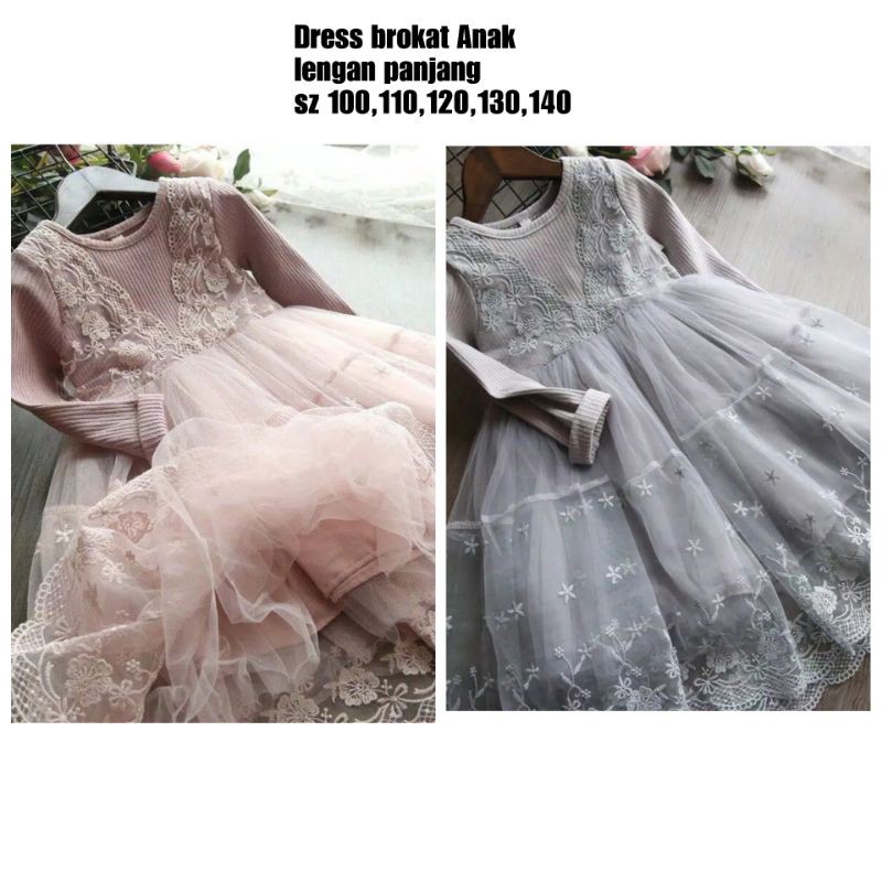 Dress Brokat Lengan Panjang Anak Import Tutu Tile Grey Peach Dress Party Dress Anak Perempuan Shopee Indonesia