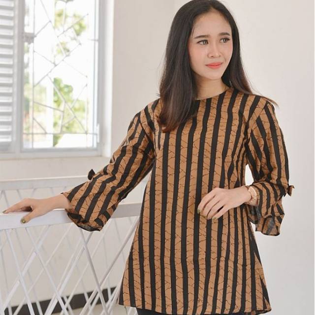 Ulasan Dan Review Tunik Sogan Series Kombinasi Motif Lurik Baju Batik Atasan Wanita Terbaru Modern Murah Arifin Ape