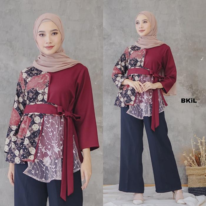 Jual Real Video Blouse Batik Modern Kombinasi Brokat Baju Atasan Wanita Maroon M Kota Pekalongan Bajukuuh Tokopedia