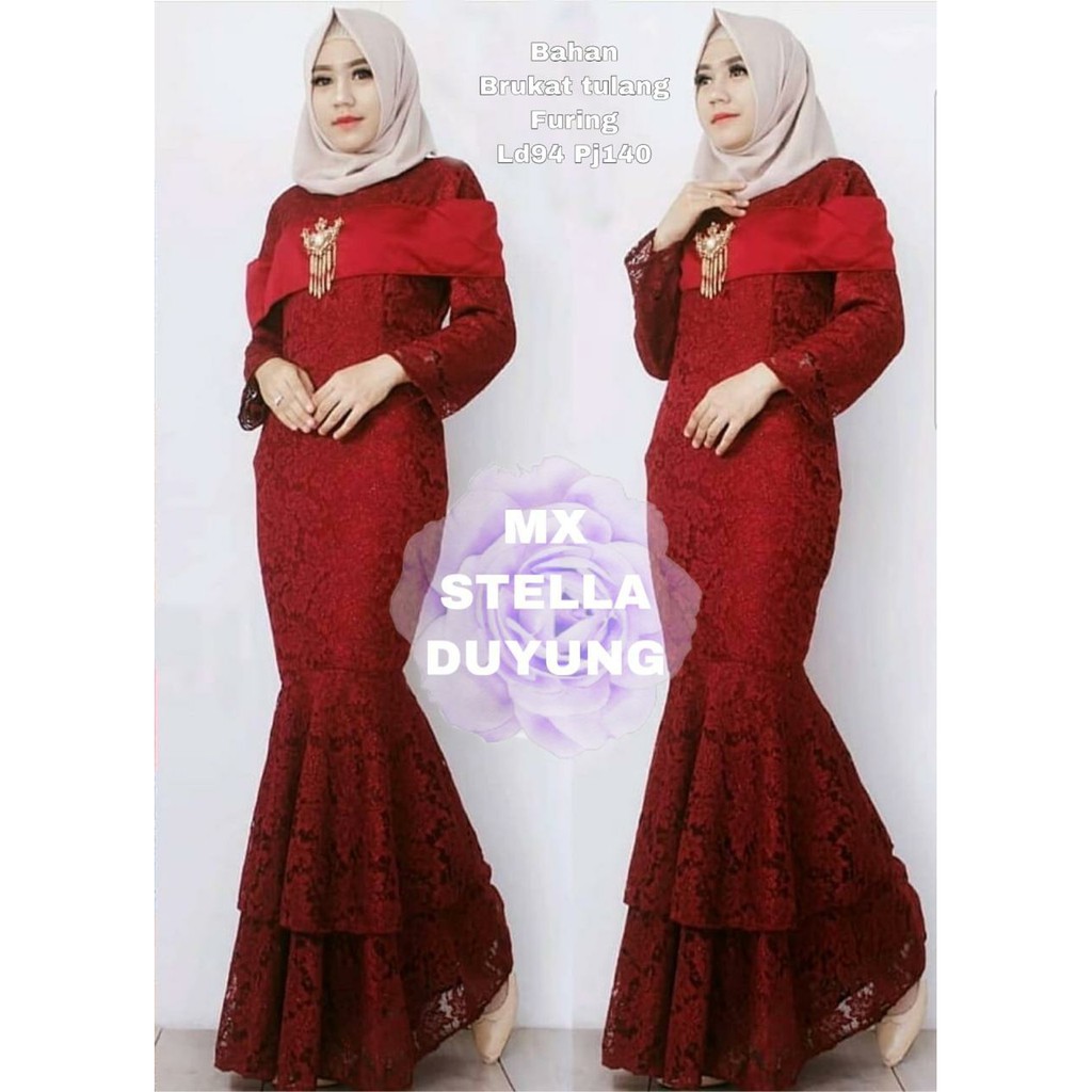 Dress Mermaid Brokat Maxi Duyung Fatimah Gamis Brukat Baju Kondangan Gaun Pesta Muslim Shopee Indonesia