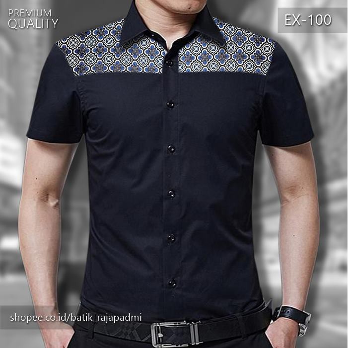 Baju Batik Pria Kombinasi Keren Modern Kemeja Batik Polos Ex 071 Bahan Premium Seragam Kantor Kerja Shopee Indonesia
