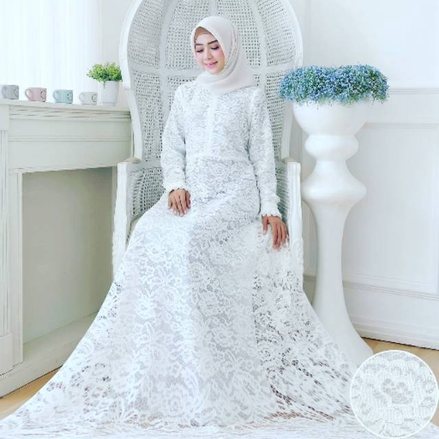 Jual Bridesmaid Long Dress Brokat Putih Gaun Pesta Lamaran Dan Akad Nikah Hijab Friendly Gaun Pesta Brokat Terbaru Moudis Shop Inc