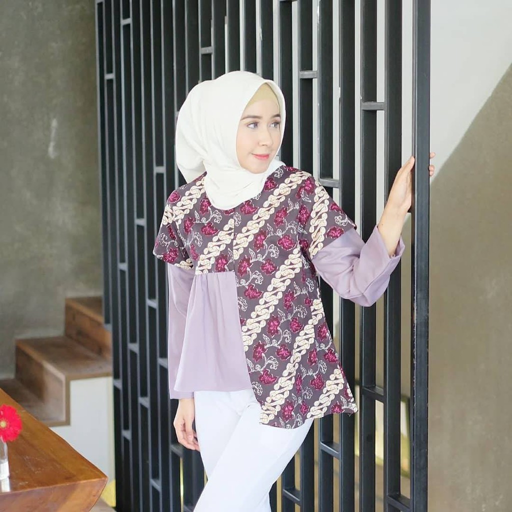 Bisa Cod Atasan Batik Wanita Kantor Baju Batik Kombinasi Mostcrepe Modern Masa Kini Terbaru Blus Batik