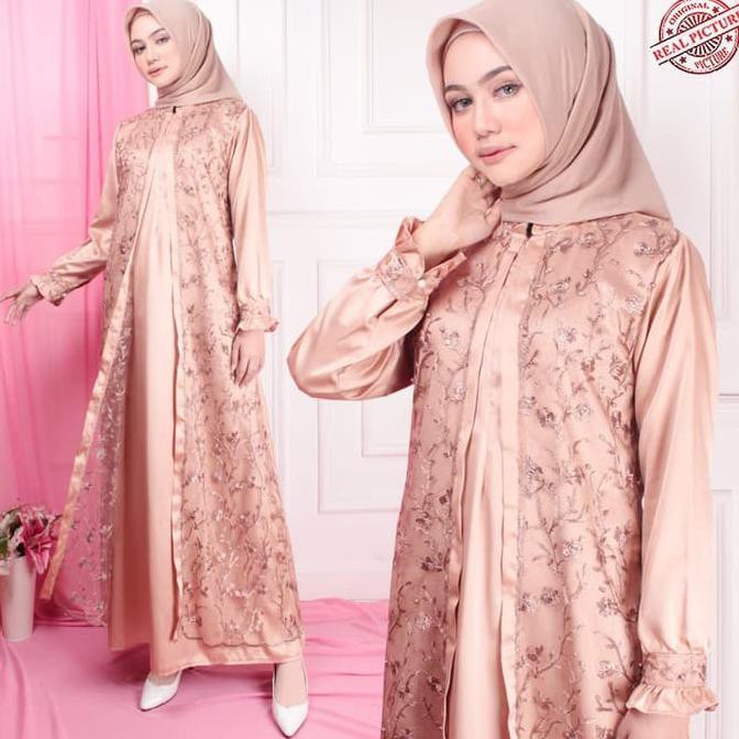 Jual Baju Gamis Pesta Modern Cape Brokat Polos Selvia Warna Coklat Susu Jakarta Pusat Anugerah Jaya Tokopedia