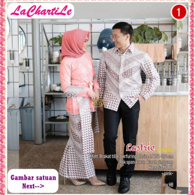 Jual Batik Couple Setelan Wanita Kebaya Brokat Baju Couple Pasangan Rose Kota Pekalongan Trimobatik Tokopedia
