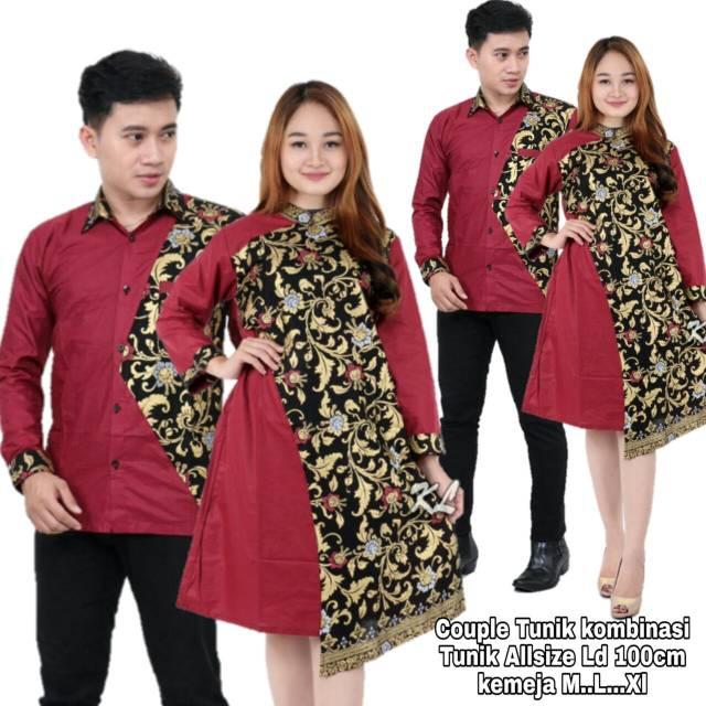 Jual Baju Batik Couple Tunic Kombinasi Prada Baju Pasangan Modern Kota Pekalongan Batiksyambat Tokopedia
