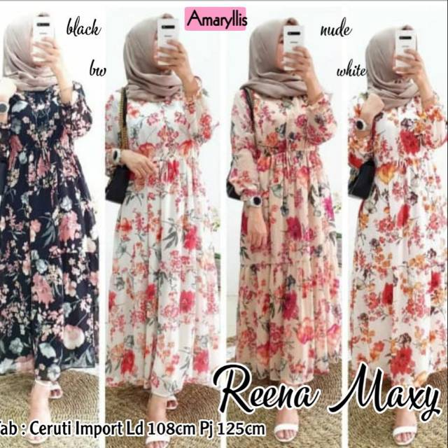 Reena Macy I Baju Gamis Motif Bunga Bahan Ceruty Inport I Baju Gamis Cantik Murah Terbaru Shopee Indonesia