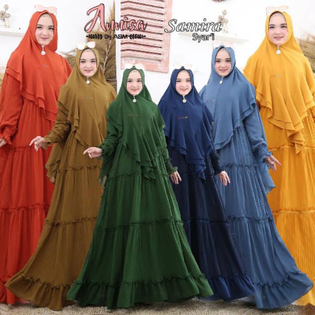 Baju Anisa Syari Set Khimar Baju Gamis Muslimah Terbaru 2020 Remaja Busana Gamis Wanita Pakaian Wanita