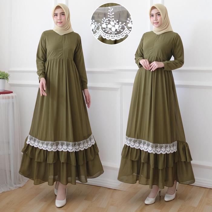 Dwita Mode Baju Gamis Wanita Terbaru Gamis Syari Bahan Ceruti Full Puring Gamis Ceruti Bordir Hijau Lazada Indonesia