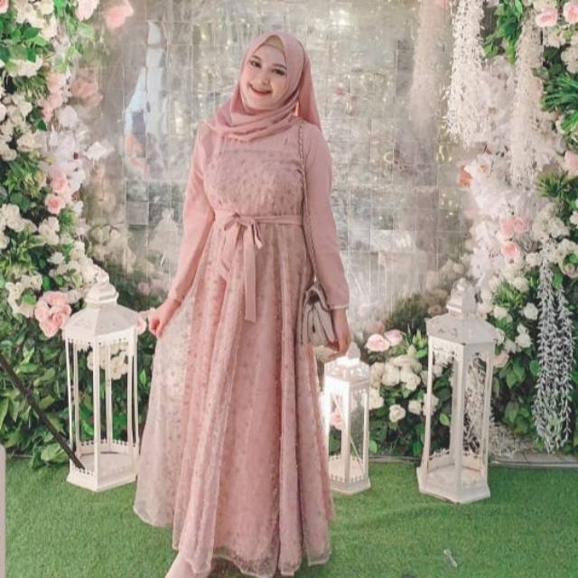 Model Terbaik Gamis Brokat Dress Pesta Gamis Trendy Modish T Wj539 Rayta Mocca Busana Muslim Shopee Indonesia