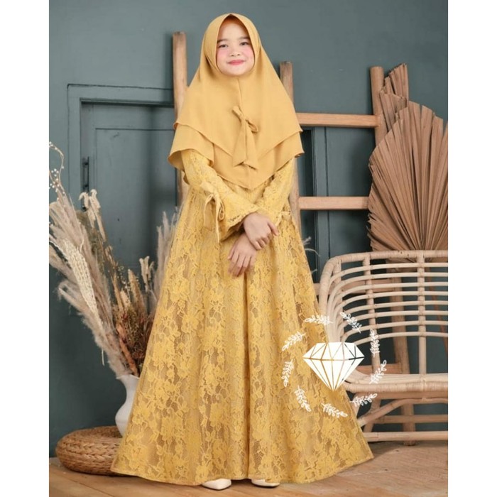 Gamis Anak Brokat Busana Muslim Anak Hijab Dhea Kids Allsize Utk Sekitar Usia Umur 7 9 Tahun Shopee Indonesia