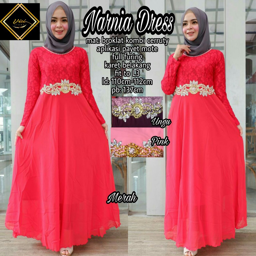 Narnia Dress Brukat Gamis Brokat Pesta Baju Gamis Wanita Muslimah By Vis Gamis Broklat Jumbo Shopee Indonesia