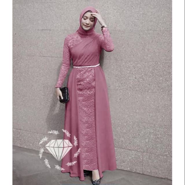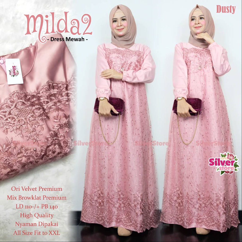 Milda 2 Dress Cantik Maxy Dress Brokat Dusty Shopee Indonesia