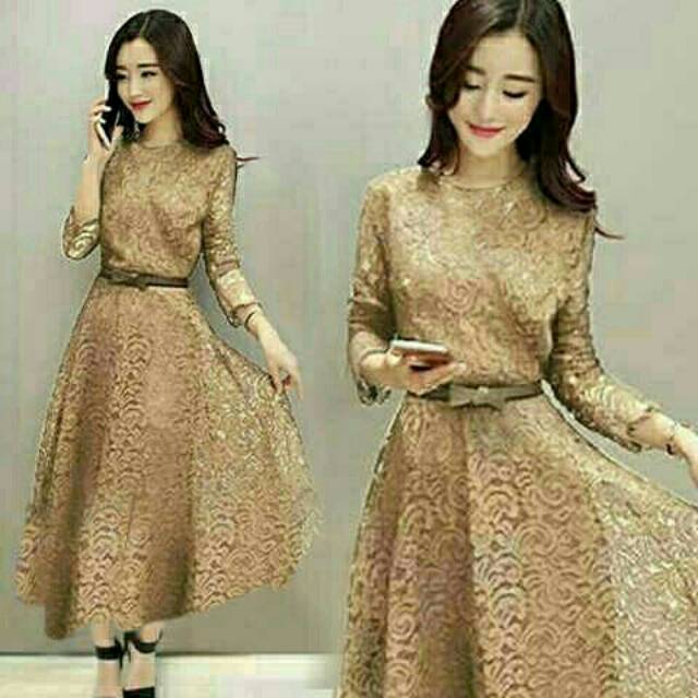 Dress Long Shaby Coksu Gaun Shabby Panjang Coklat Susu Cream Brukat Furing Pekanbaru Pesta Kasual Shopee Indonesia